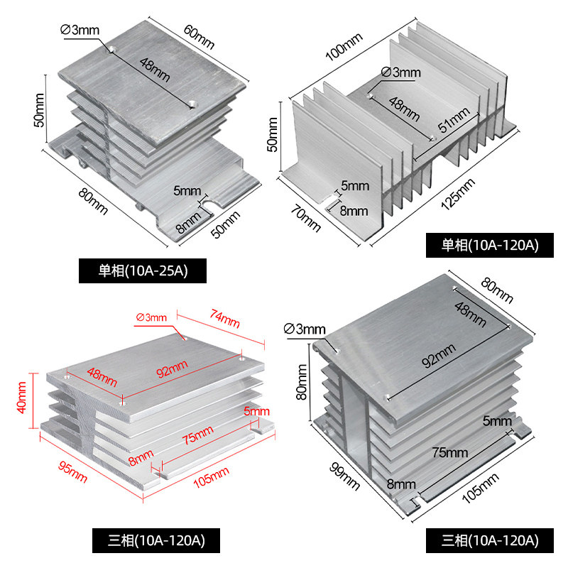 通用小散热器三相固态散热器SSR铝制散热片单相固态继电器散热座