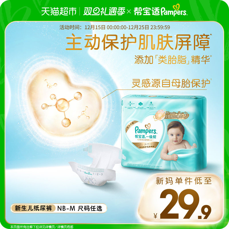 【护臀级】帮宝适一级帮纸尿裤添加类胎脂超薄透气NB-M尿不湿体验