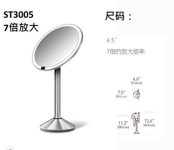推荐理由:原装simplehuman便携化妆镜 智能感应 LED灯光 网红镜子 港购