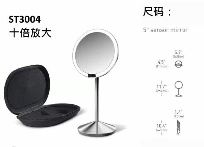 原装simplehuman便携化妆镜 智能感应 LED灯光 网红镜子 港购