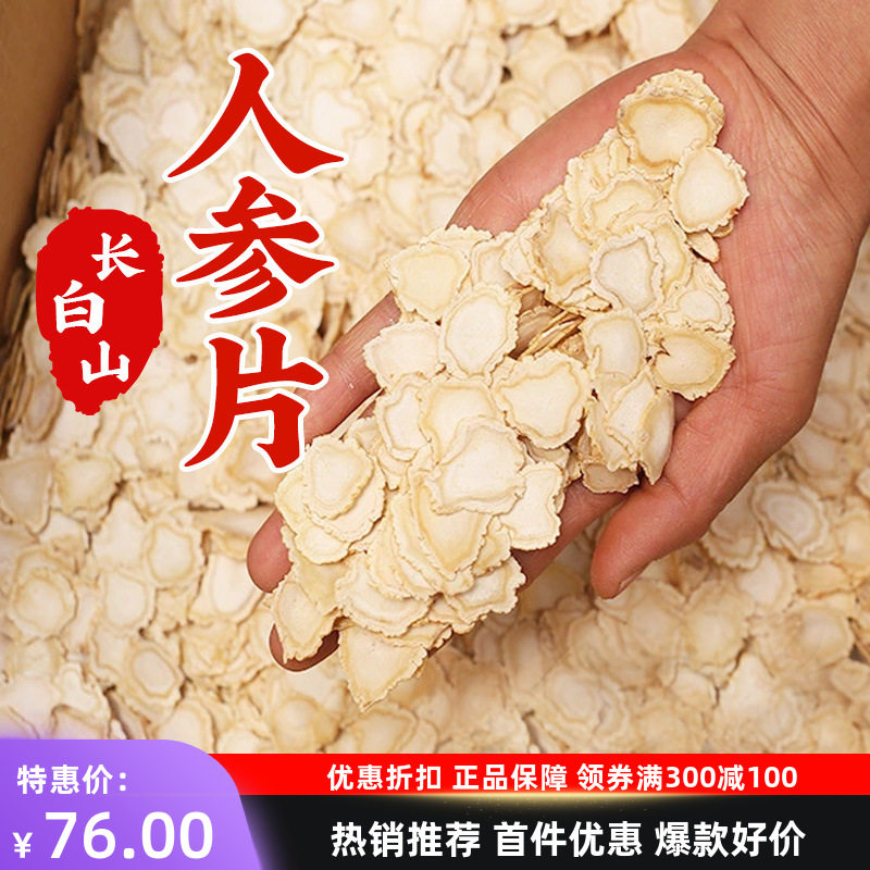 东北人参长白山人参片250g瓶装整根人参白参生晒参软支人参切片