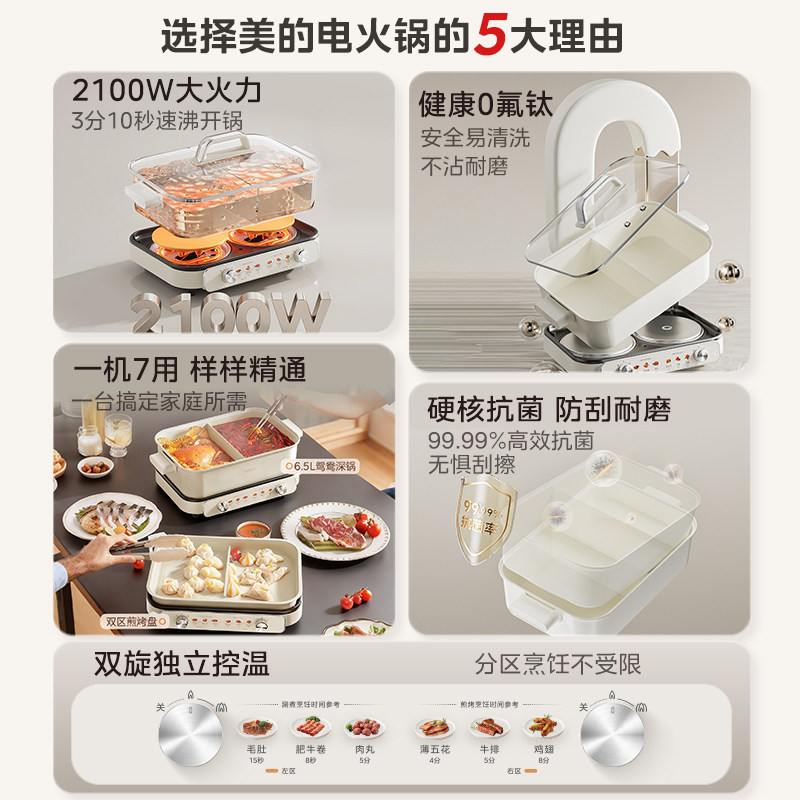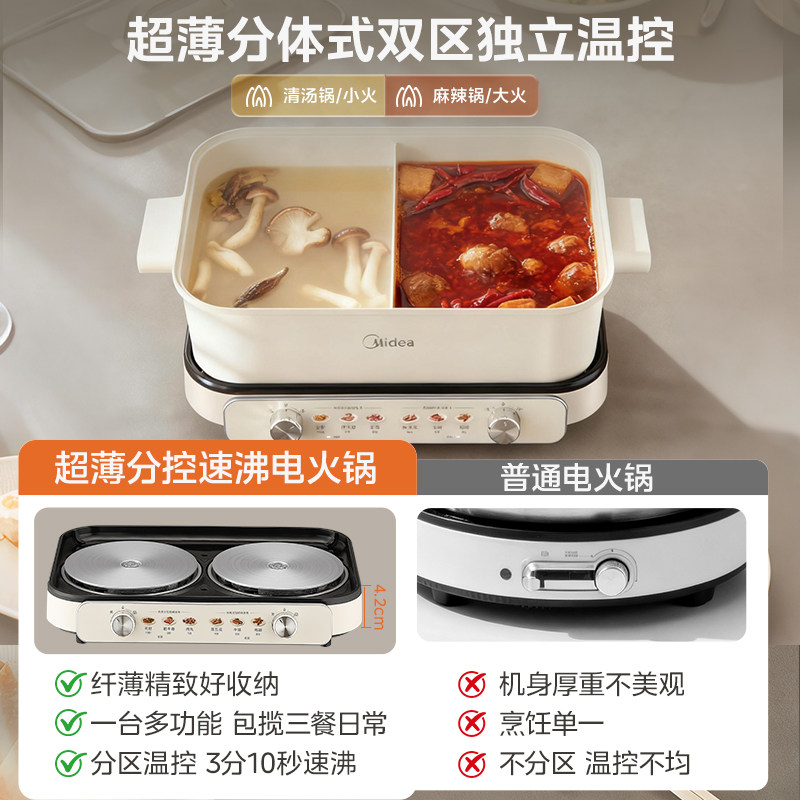 美的电火锅0涂层多功能家用分体式电热火锅煎煮一体锅新款电煮锅