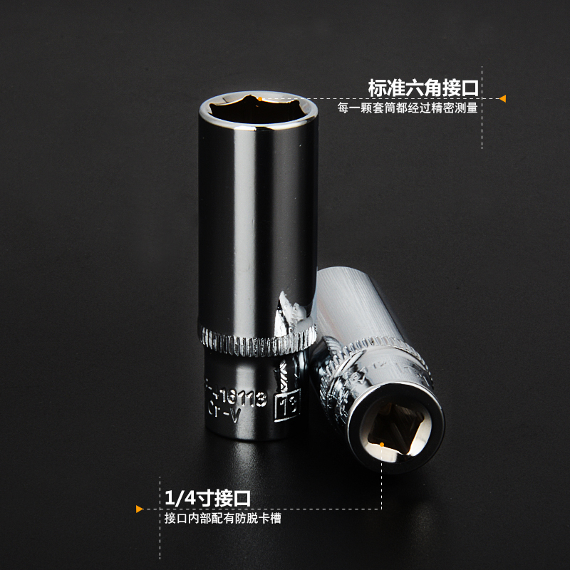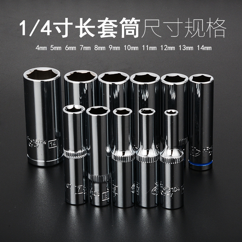 华丰巨箭6.3mm加长六角套筒长套管1/4小飞棘轮扳手套筒6角套筒头