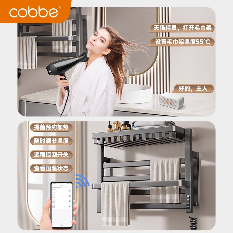 推荐理由:卡贝枪灰电热毛巾架家用卫生间免打孔加热烘干架智能浴室置物架子
