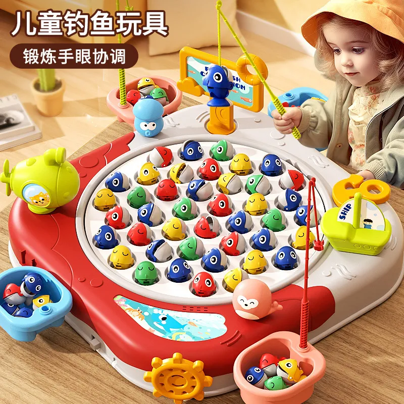 儿童磁性钓鱼玩具宝宝早教益智男女孩电动大号旋转钓鱼盘亲子互动