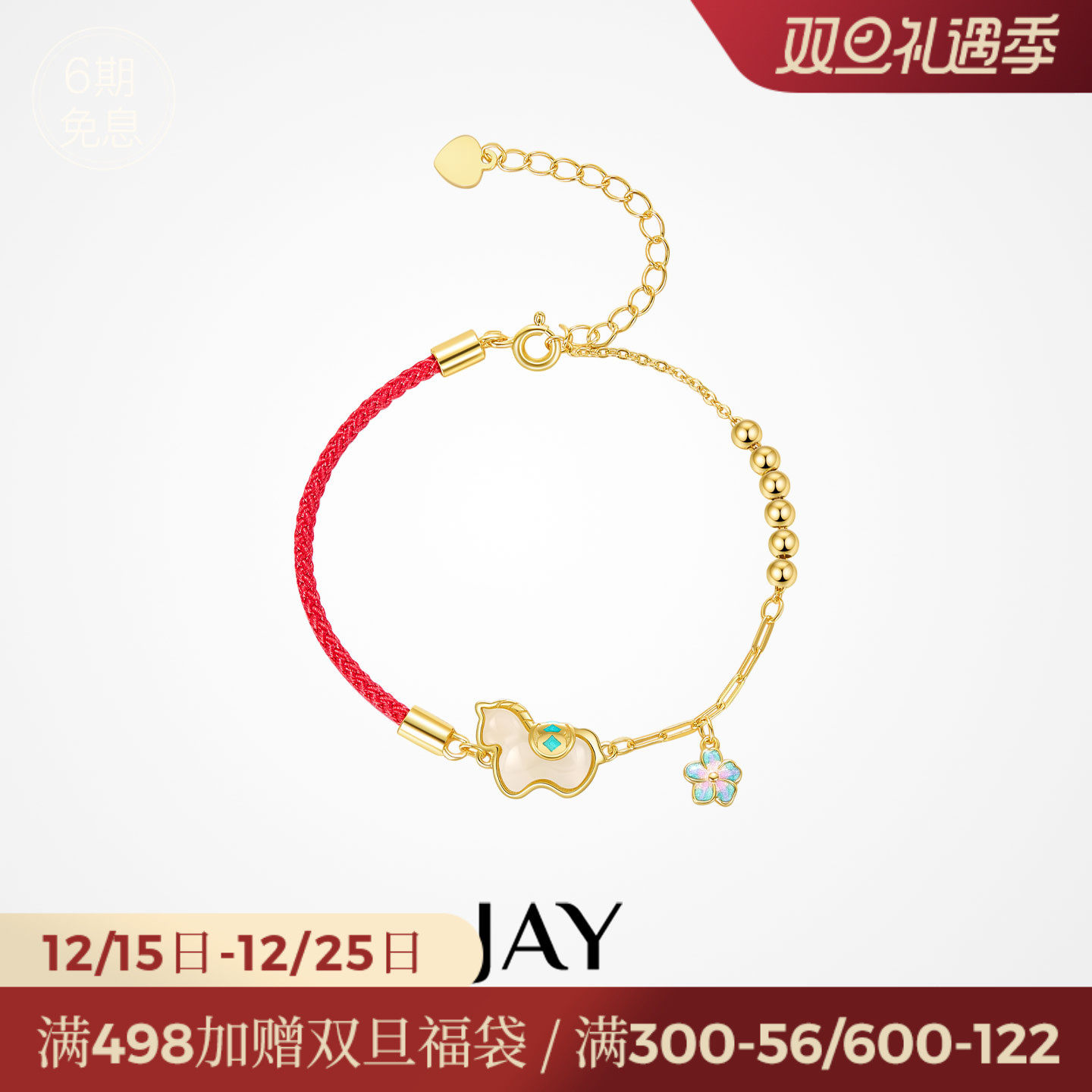 JAY纳福2026马年本命年手链生肖马礼物新年红绳首饰和田玉手饰女