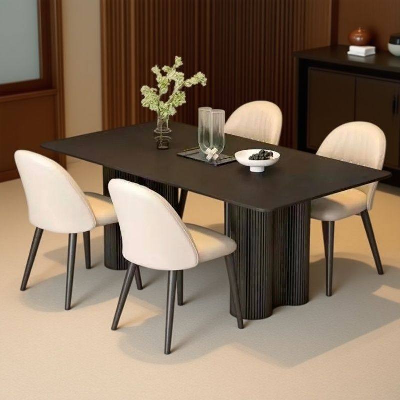 黑色岩板餐桌家用小户型纯黑岩板餐桌家用餐桌餐椅组合长方形桌子