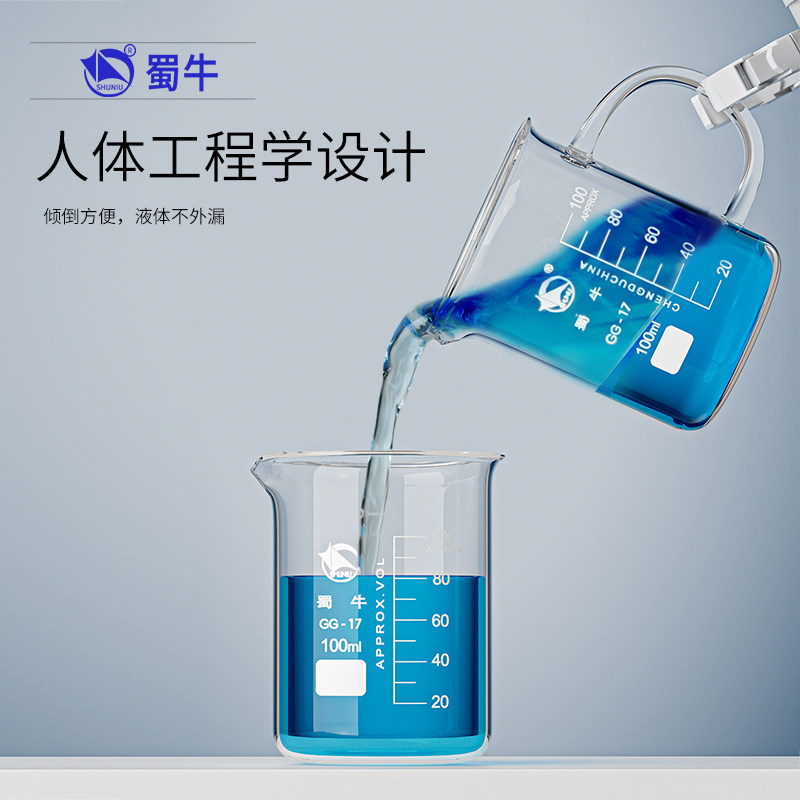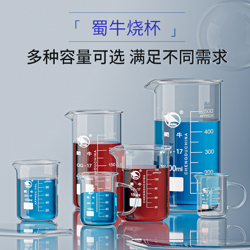 蜀牛牌玻璃烧杯50 100 150 250 500 800 1000 2000 3000 5000ml加厚耐高温化学实验器材刻度高型烧杯喝水家用