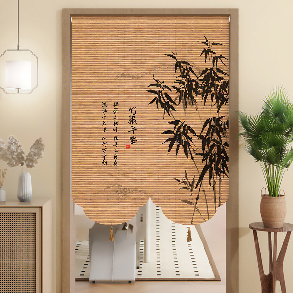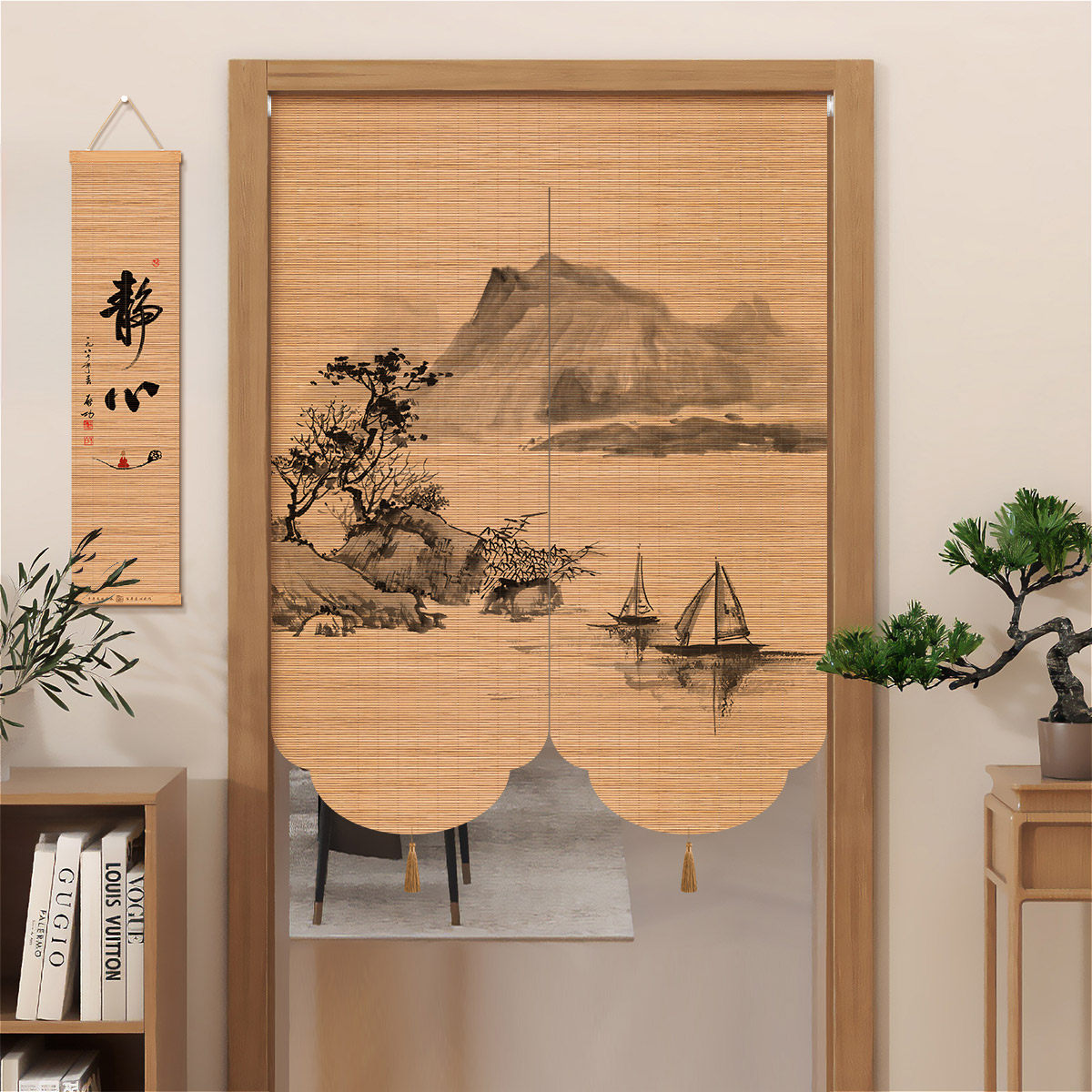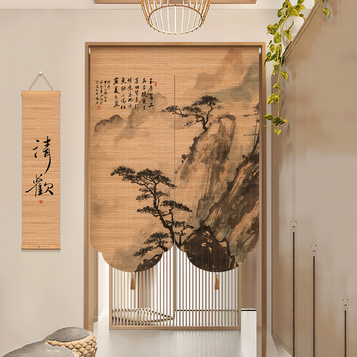 房间隔断帘山水画门帘遮挡帘屏风装饰竹帘卷帘出租屋宿舍隐私帘子