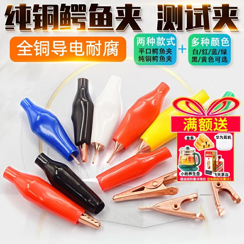 纯铜鳄鱼夹子 紫铜电工夹 电源电线测试夹带绝缘套平口小铜夹电夹