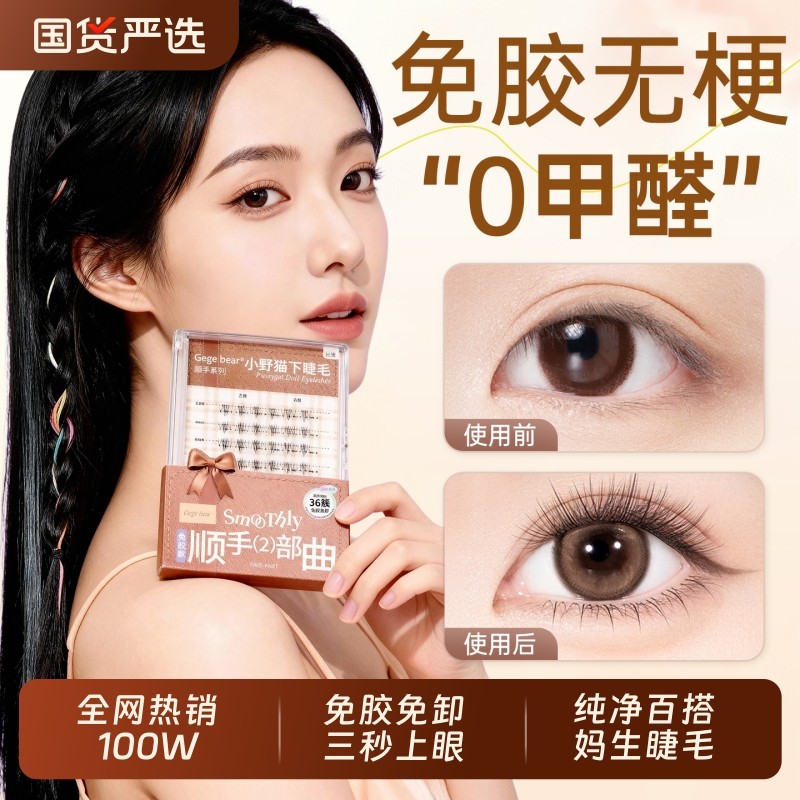 免胶假睫毛超自然仿真太阳花小火苗下睫毛2025新款女团胶水眼睫毛