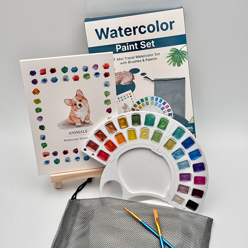 水彩颜料套装固体水彩涂色本卡通画册儿童绘画调色盘画笔工具套装