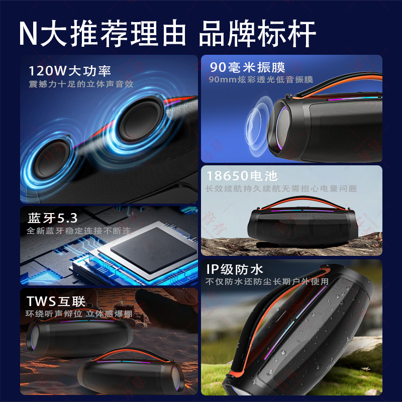 推荐理由:华强北户外战鼓音响低音炮大音量防水防尘无线手提便携式蓝牙音箱