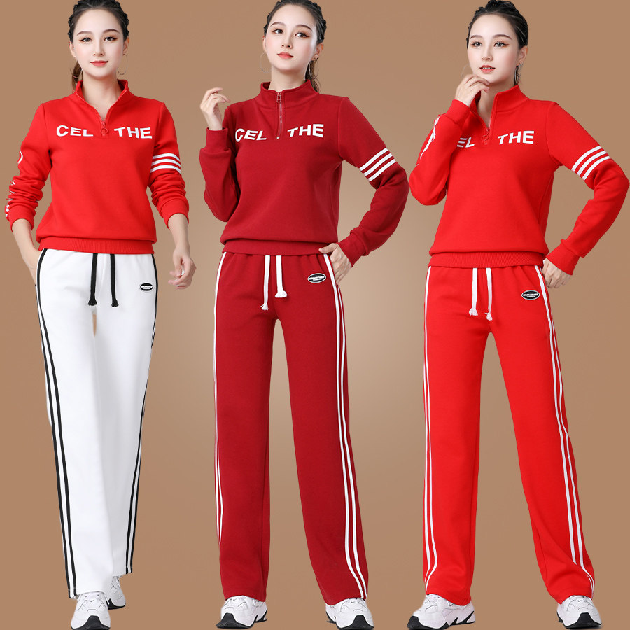 推荐理由:春秋广场舞服装新款套装立领半拉链健身操服装杨丽萍跳舞运动服女