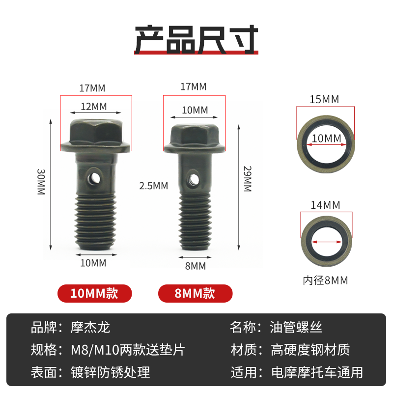 推荐理由:电动摩托车碟刹油泵油管螺丝越野车刹车上下泵卡钳空心螺丝螺栓