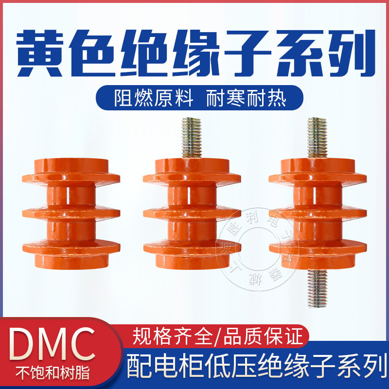 绝缘子30/40/50*M6/M8/M10母不带螺杆螺孔低压黄色玻圈DMC树脂