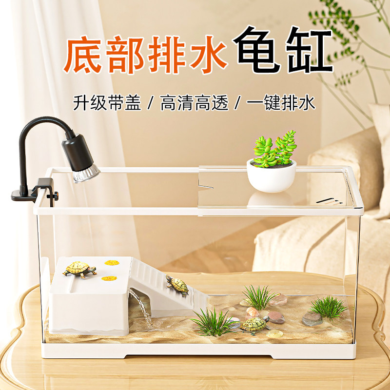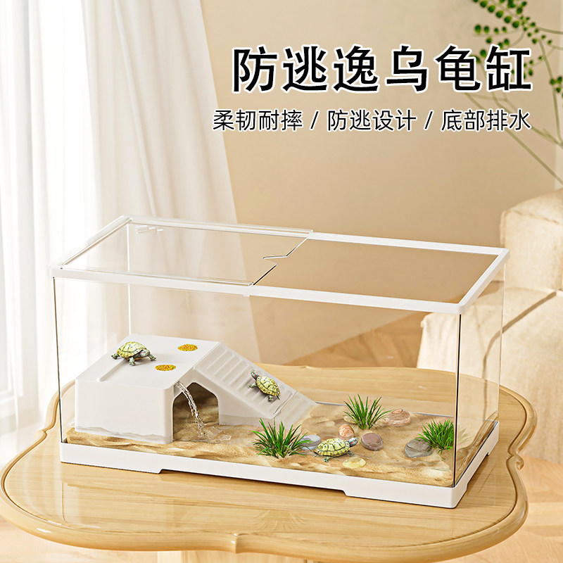 乌龟饲养缸生态造景带晒台透明塑料饲养箱小型造景带盖龟缸小鱼缸