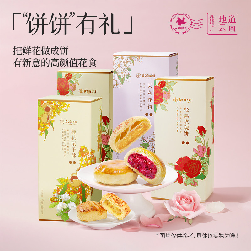 嘉华鲜花饼云南特产玫瑰美食桂花糕点礼盒旗舰店圣诞礼物送礼长辈