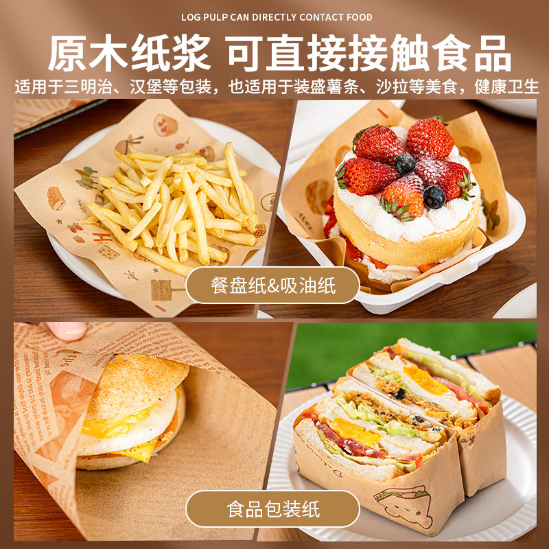 推荐理由:英国吸油纸防油垫纸三明治包装专用牛皮食物商用烘焙食品级一次性