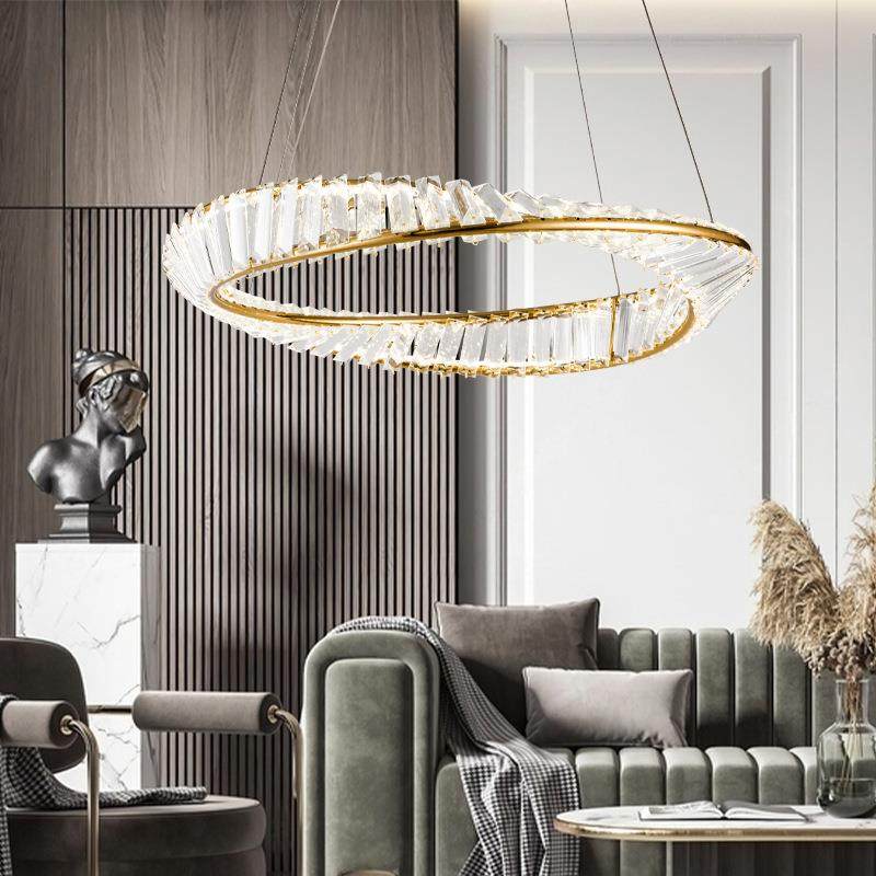 北欧轻奢水晶吊灯现代客厅卧室灯设计师酒店别墅金色圆环样板房灯
