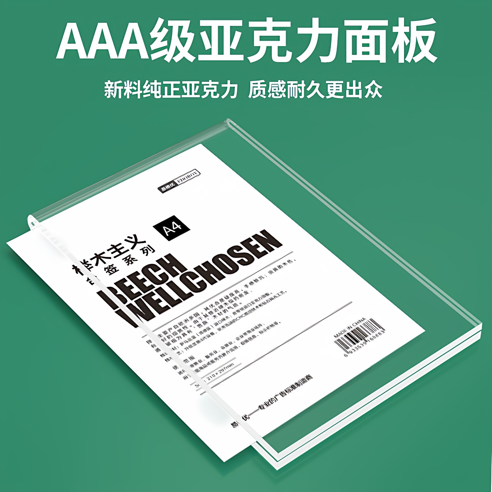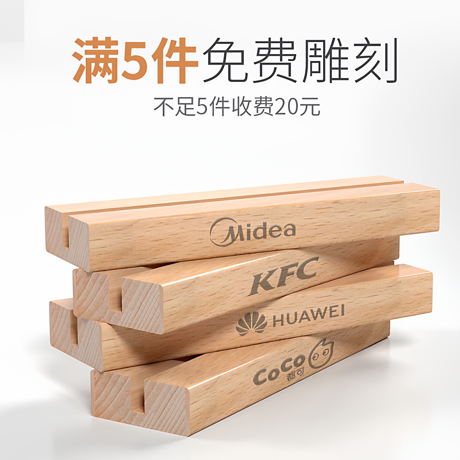 A4亚克力台卡木头桌牌A5加厚台签透明立牌台牌菜牌标价牌A6酒水牌价格餐牌双面桌面木质底座台卡架 展示牌