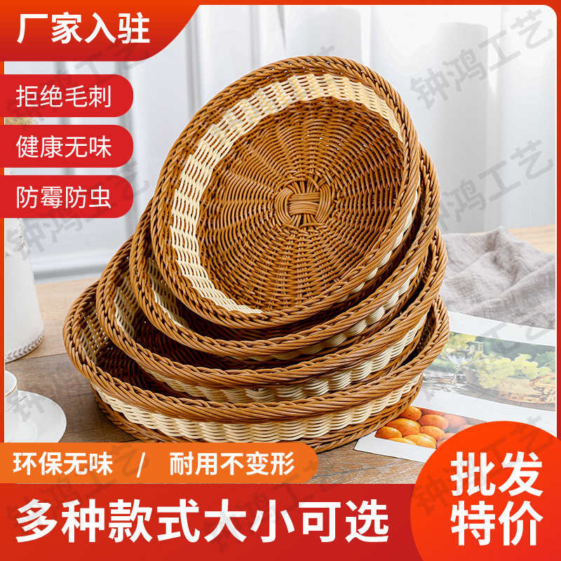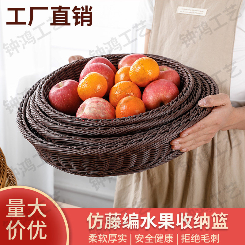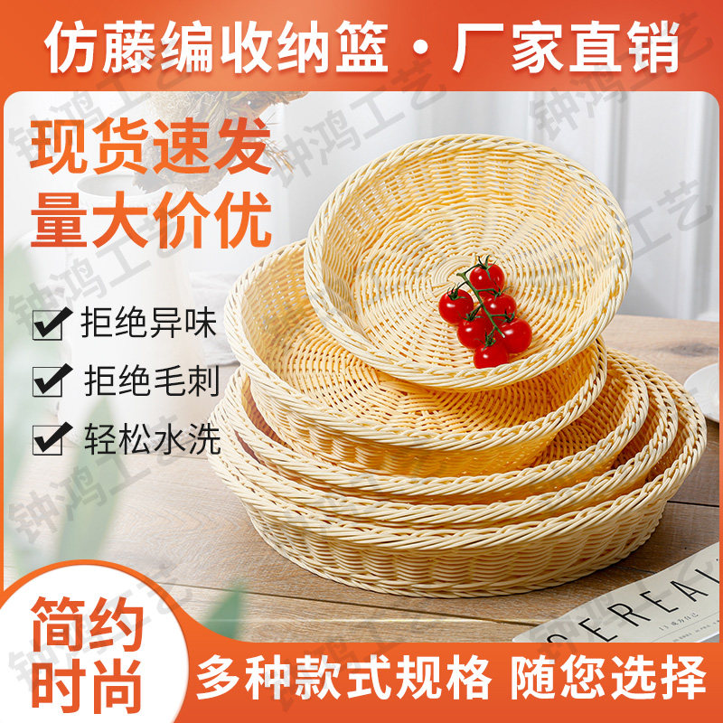 仿藤编织手工水果篮子糖果面包零食干果盘蔬菜塑料存物整理收纳筐
