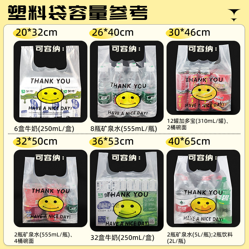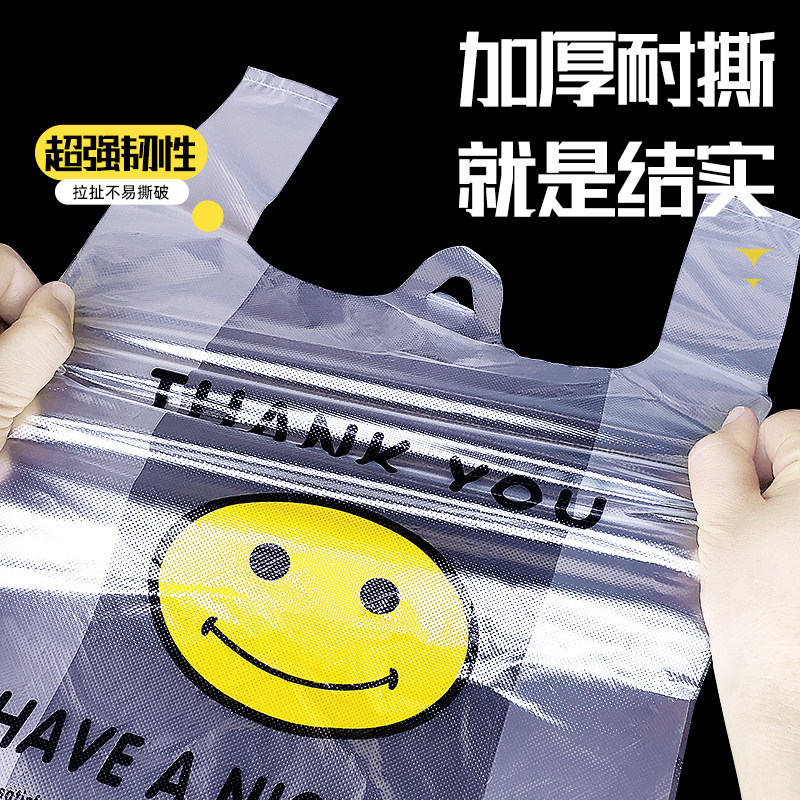 推荐理由:透明塑料袋垃圾袋笑脸购物袋超市打包背心袋外卖手提一次性方便袋