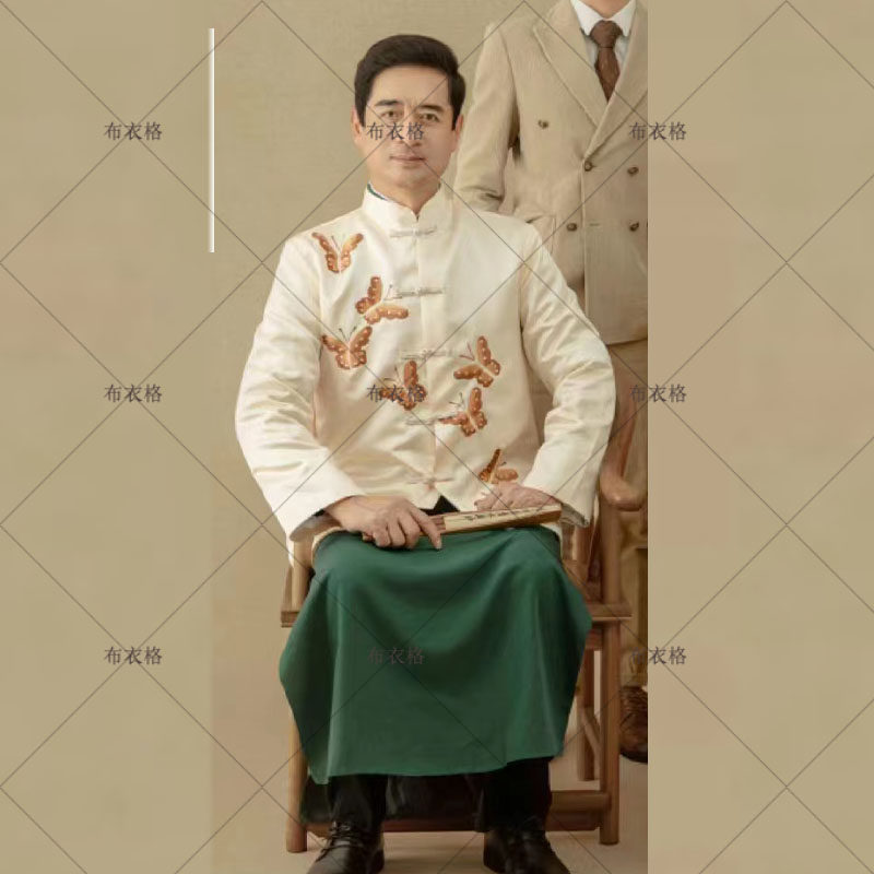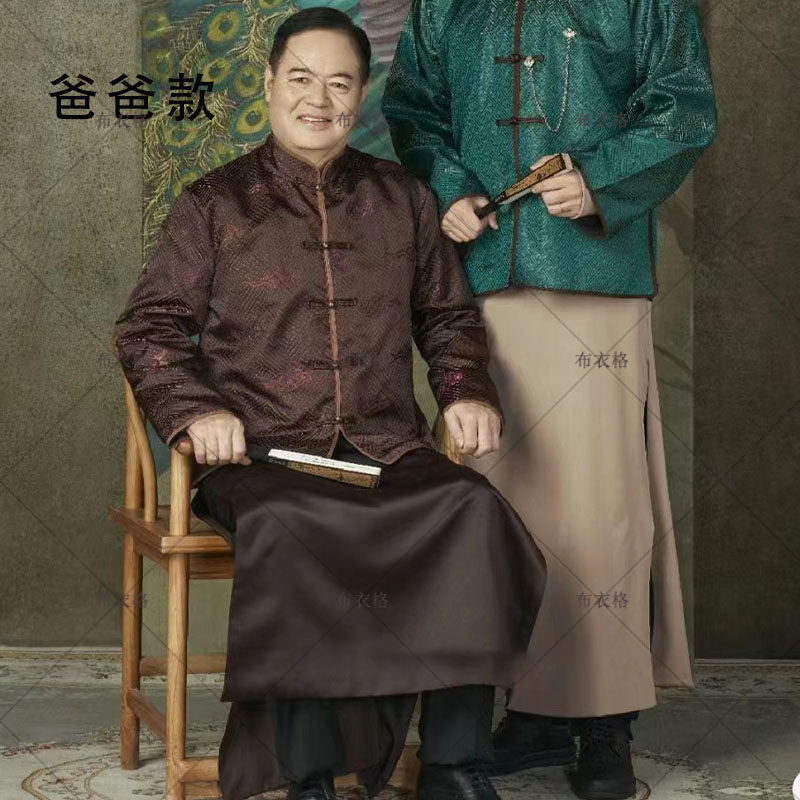 推荐理由:全家福古装男青年长袍马褂民国风老爷服相声影楼拍摄样片演出服装