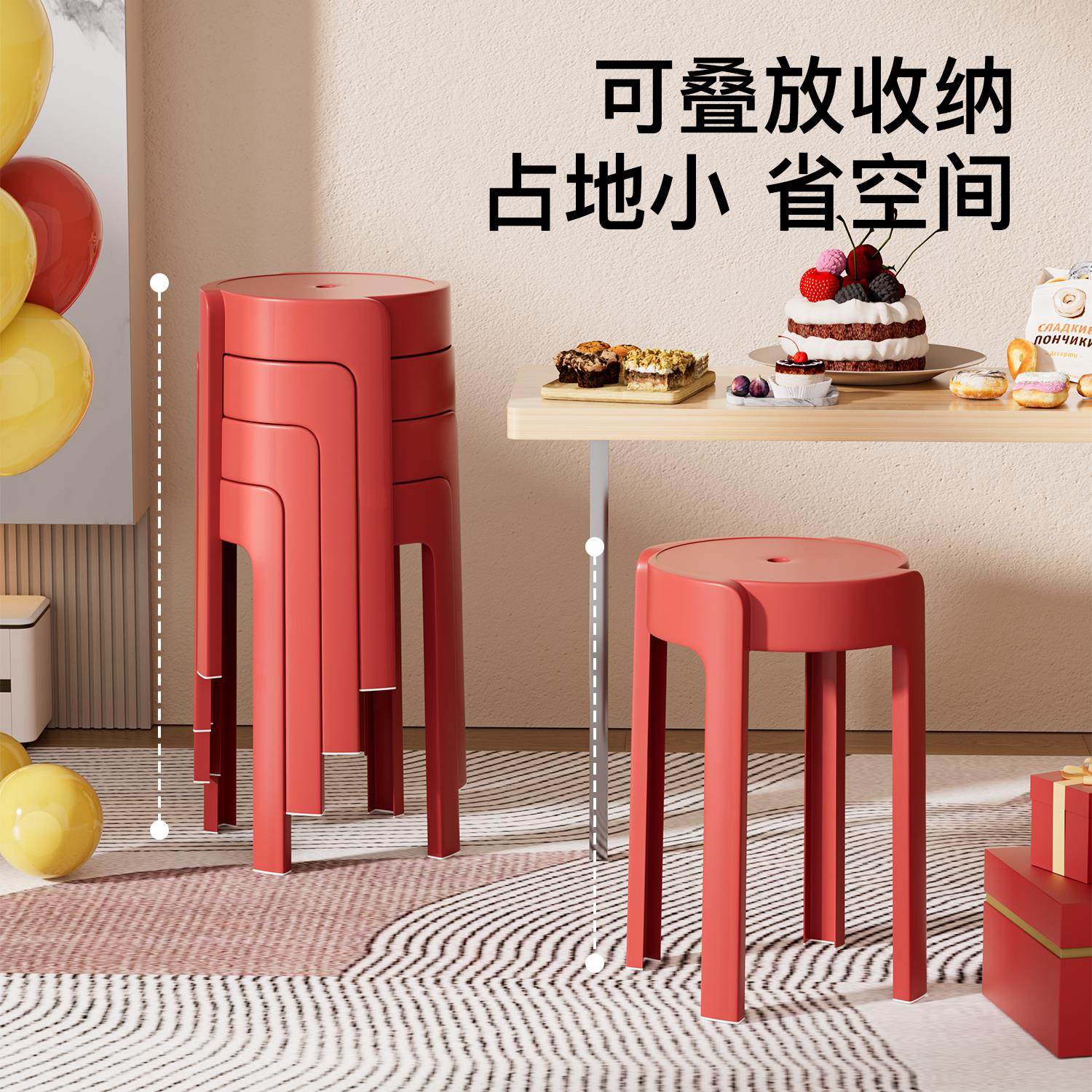 推荐理由:塑料凳子可叠放家用餐椅餐桌圆凳现代简约商用高板凳客厅加厚防滑