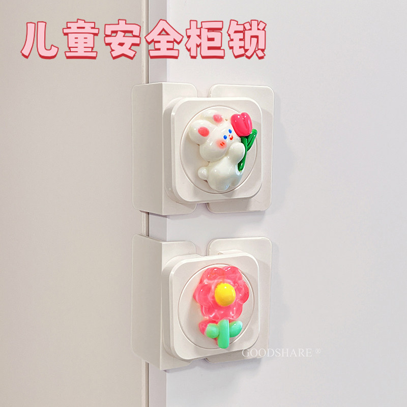 儿童安全柜子固定卡扣可爱卡通婴儿防夹手防开多功能冰箱柜门锁扣