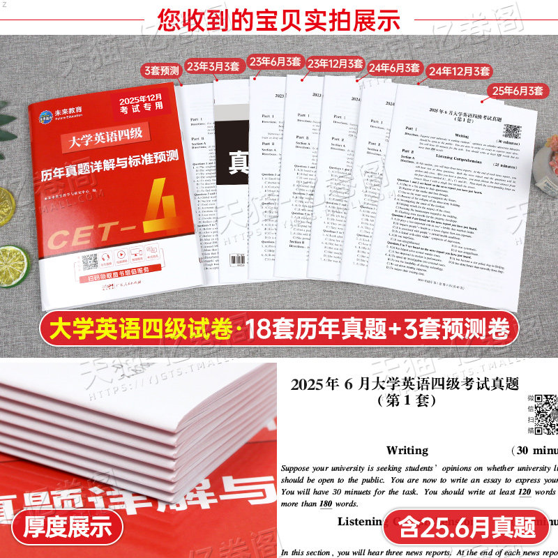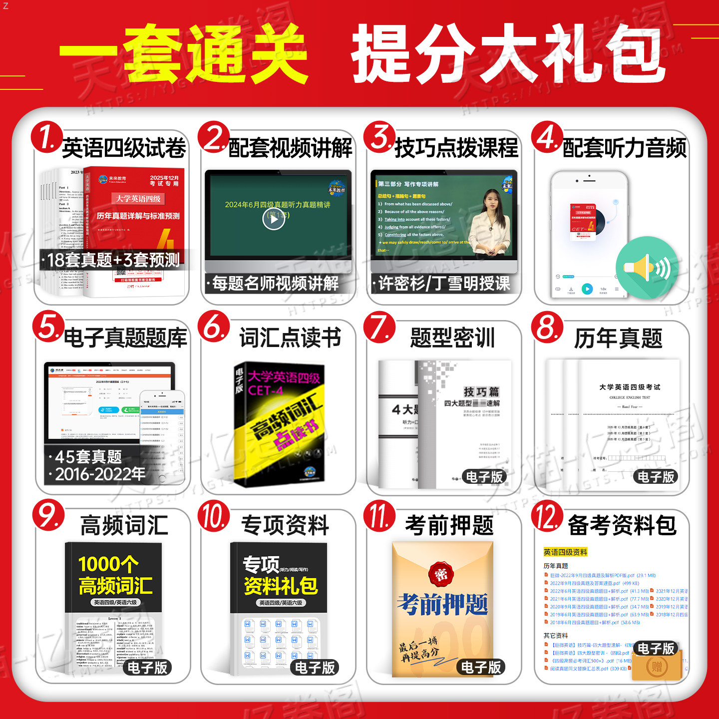 推荐理由:赠12月真题】备考2026年6月大学英语四级真题六级考试教材历年试卷词汇书学习资料套卷子模拟46练习题刷题阅读专项训练2025四六级4