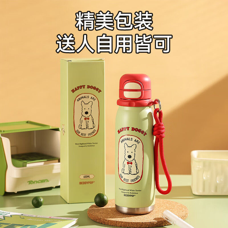 推荐理由:杯具熊锐气双饮运动保温杯西高地美式复古大容量儿童学生便携水壶