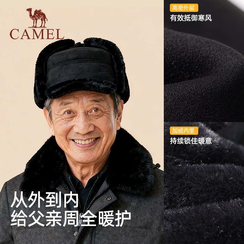 骆驼中老年保暖雷锋帽男送爸爸长辈爷爷帽老人帽加绒加厚护耳帽子