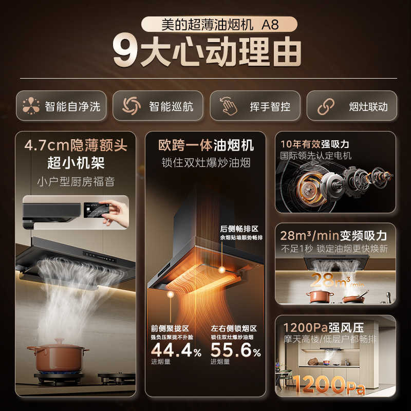 推荐理由:政府补贴20%美的A8抽油烟机燃气灶烟灶消热家用厨房组合三件套装