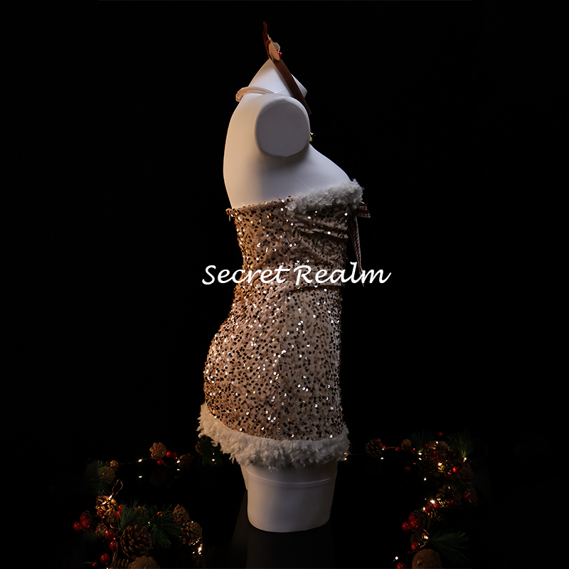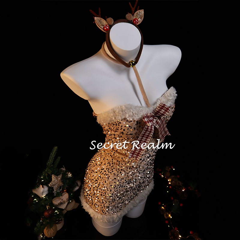 秘境「极光女神」圣诞节cos制服麋鹿性感睡裙毛绒纯欲连体裙qqny