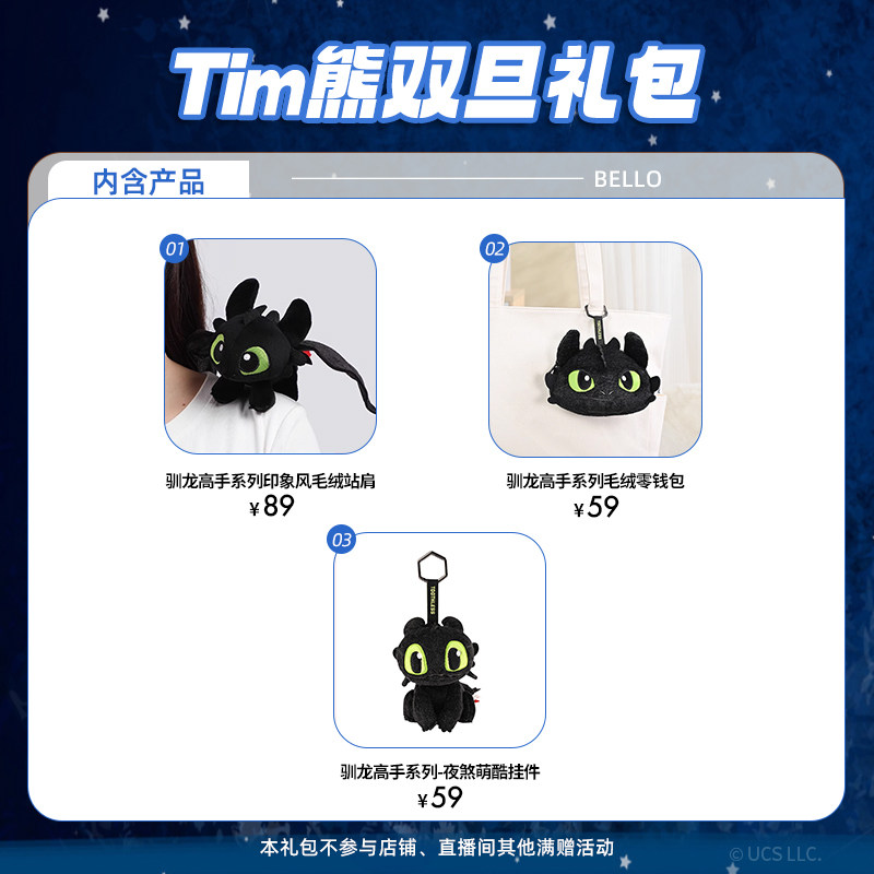 推荐理由:环球影业驯龙高手圣诞元旦礼包毛绒站肩公仔零钱包挂件情人礼物