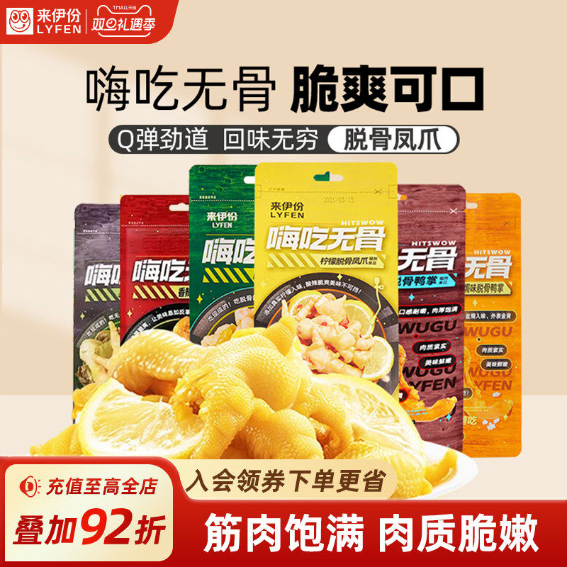 来伊份嗨吃无骨凤爪125g柠檬山椒脱骨鸭掌泡椒鸡爪休闲解馋小零食