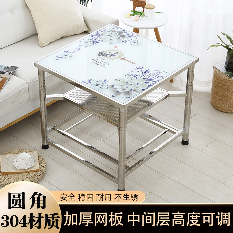 推荐理由:新升级款不锈钢网板家用烤火桌加厚冬天取暖桌正方形304架子餐桌