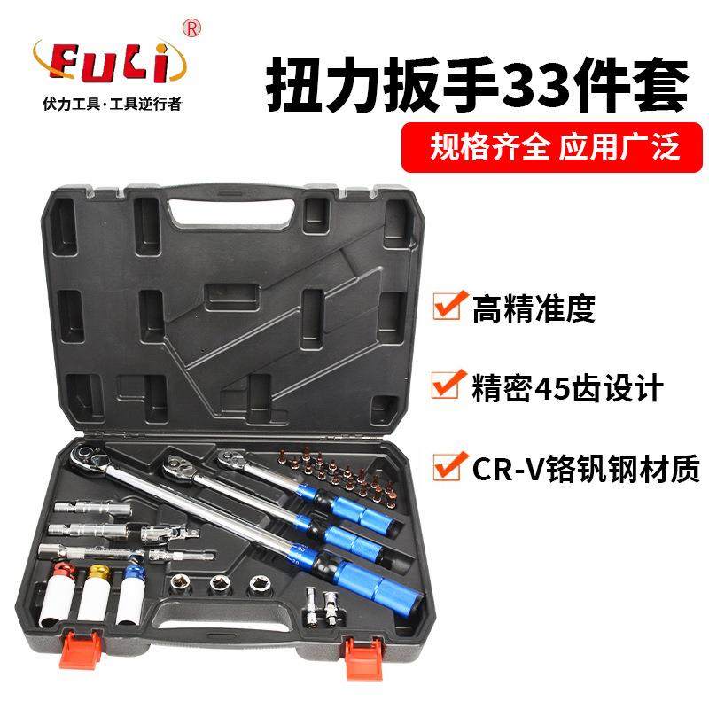 33件套高精度预置可调汽修轮胎火花塞自行车扭力公斤力矩扳手工具