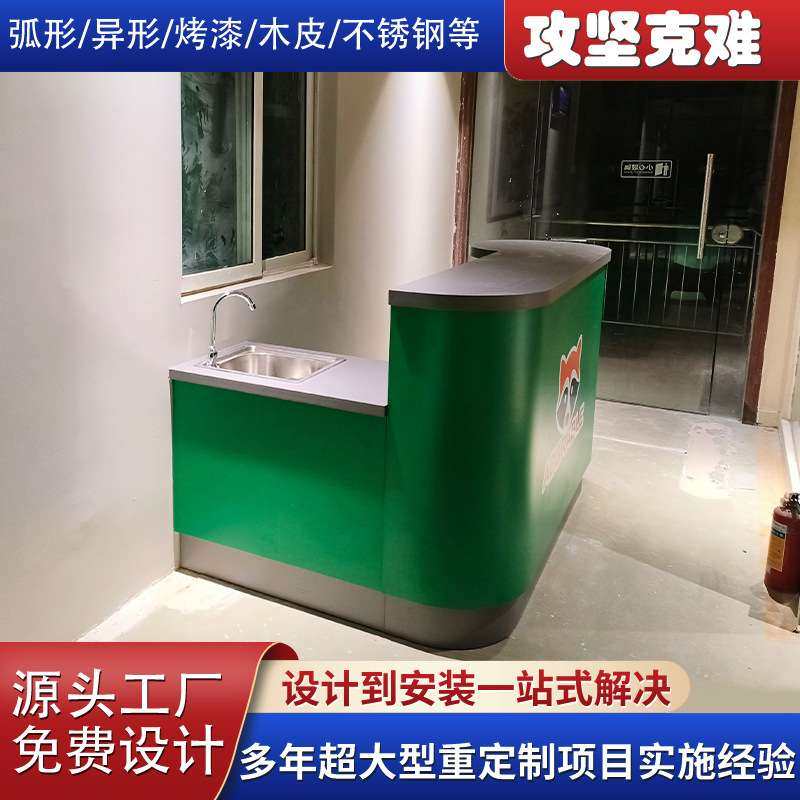 宠物店收银工作台 水吧台一体柜 前台接待吧台柜 公司弧形接待台