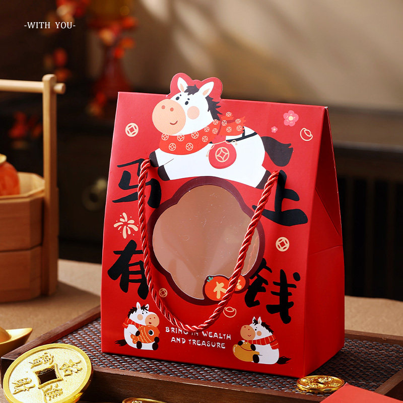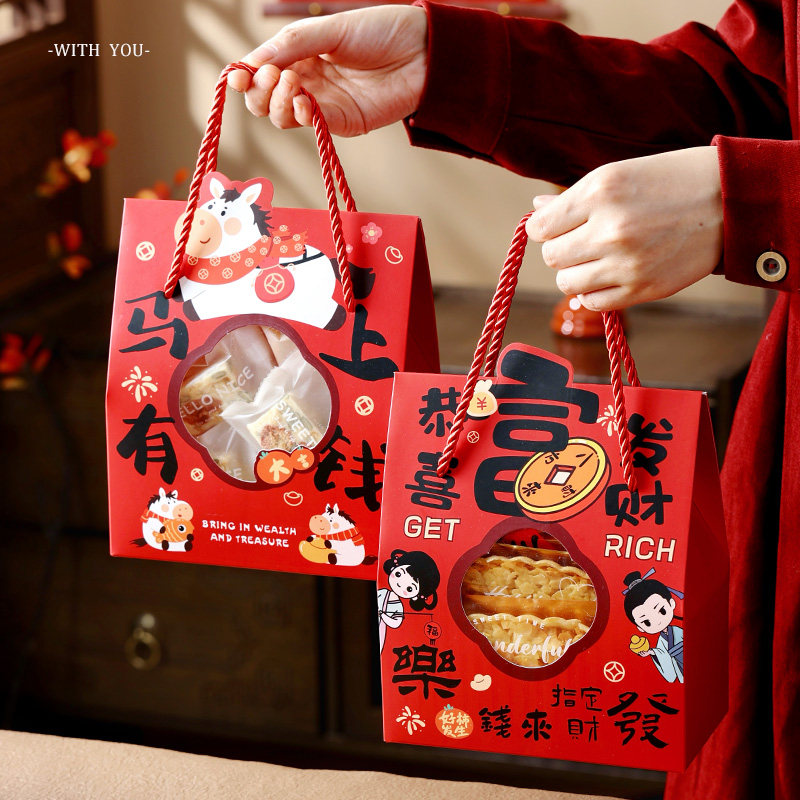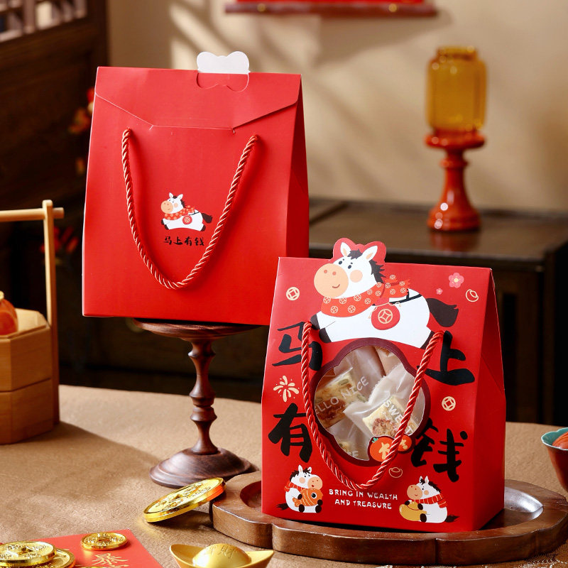 2026马上有钱礼品包装盒过年太妃糖饼干雪花酥糯米船手提糖果点心