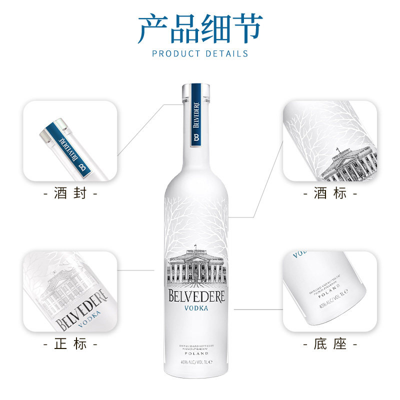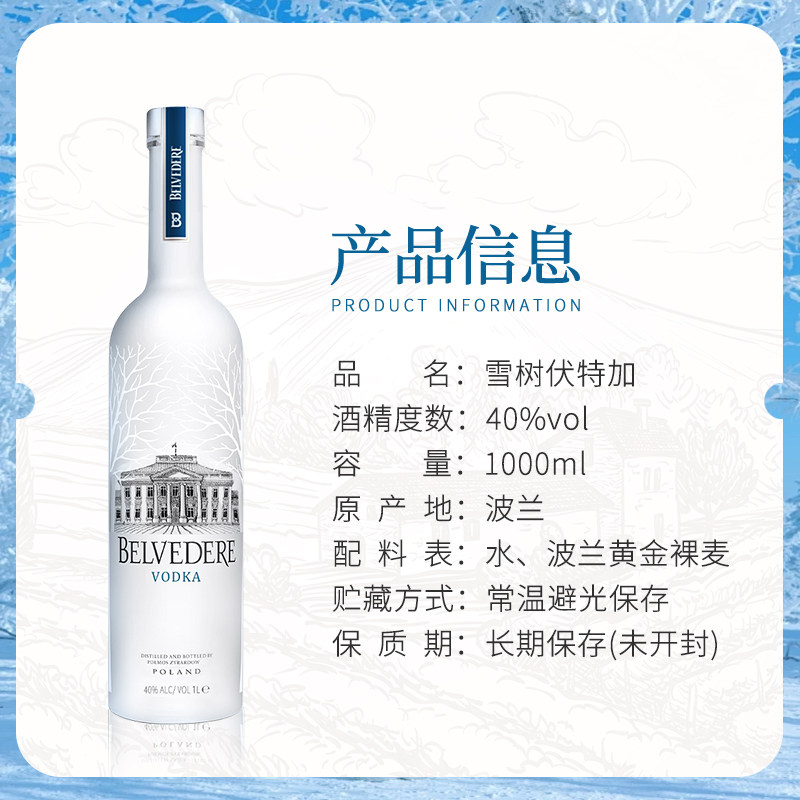 推荐理由:Belvedere/雪树伏特加原味1000ML 波兰进口Vodka洋酒烈酒调酒基酒