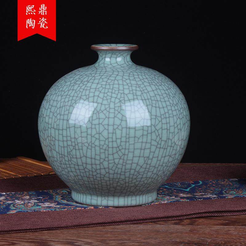 景德镇仿古官窑裂纹石榴瓶现代中式摆件家居装饰青釉开片陶瓷花瓶