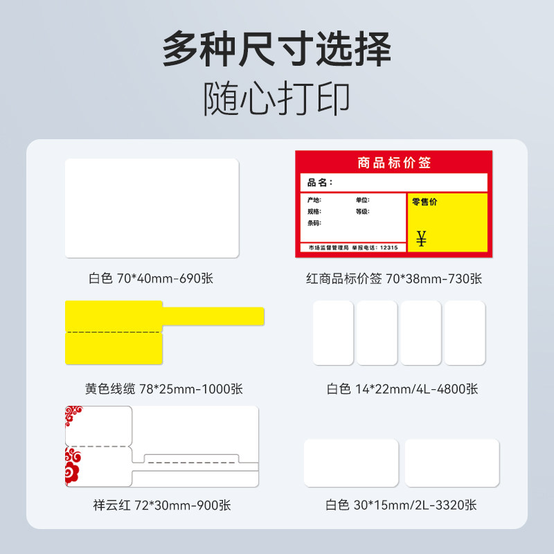 【精臣K3/K3W/K2白色透明彩色】服装吊牌标签打印纸四防热敏纸食品留样标签纸冷冻二维码防水不干胶条码贴纸