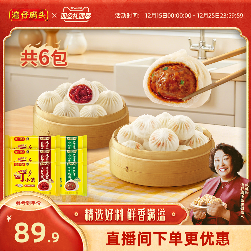 湾仔码头新品速食早餐蜜汁叉烧/醇香猪肉小笼包包点点心6包组合