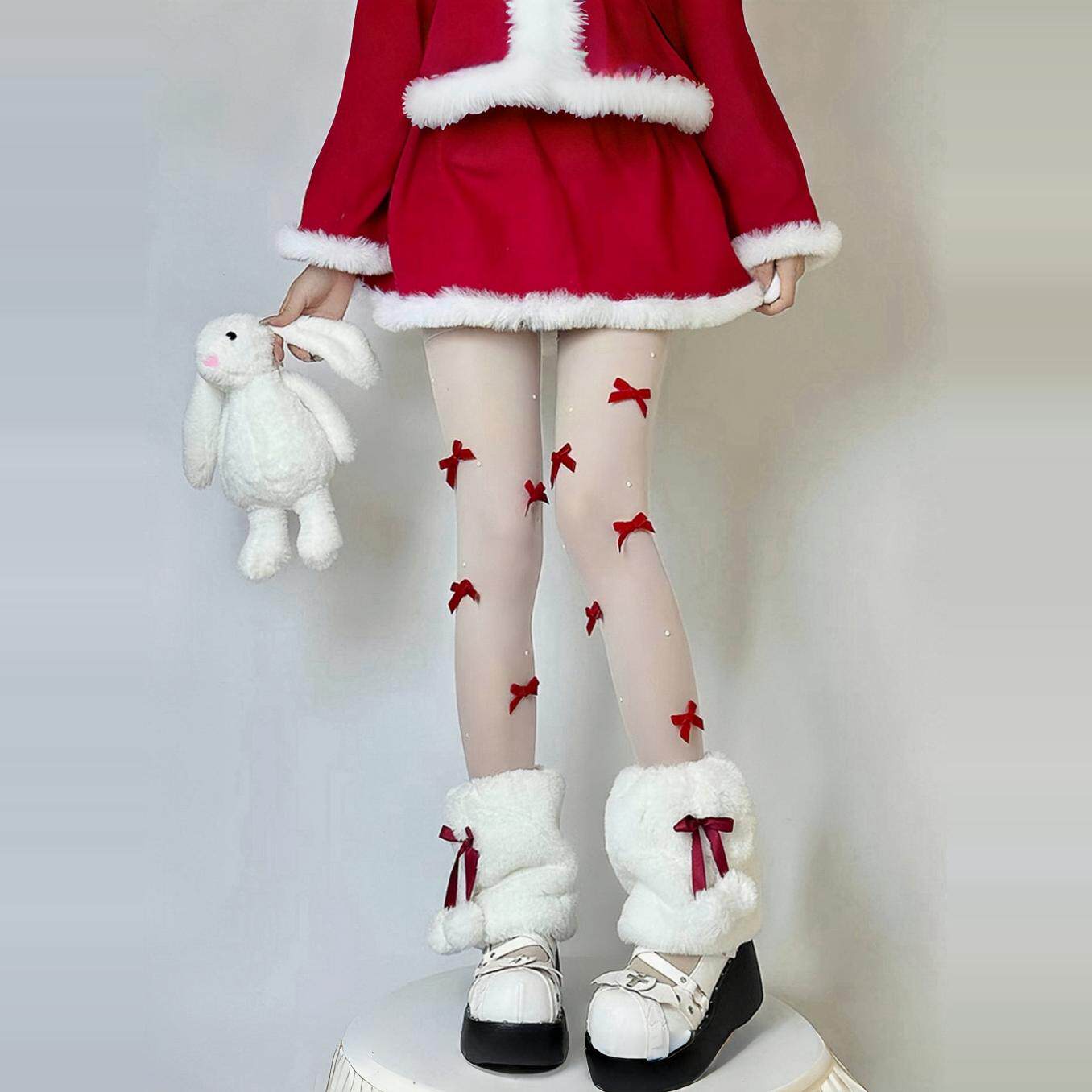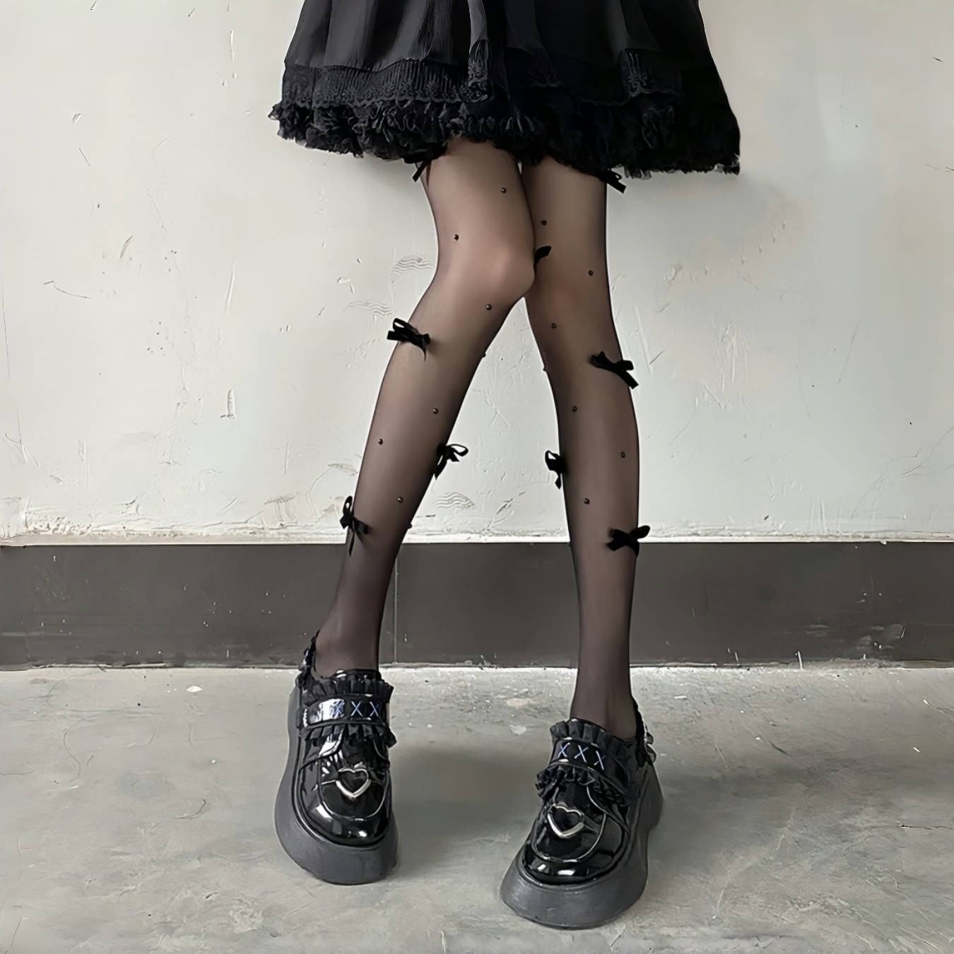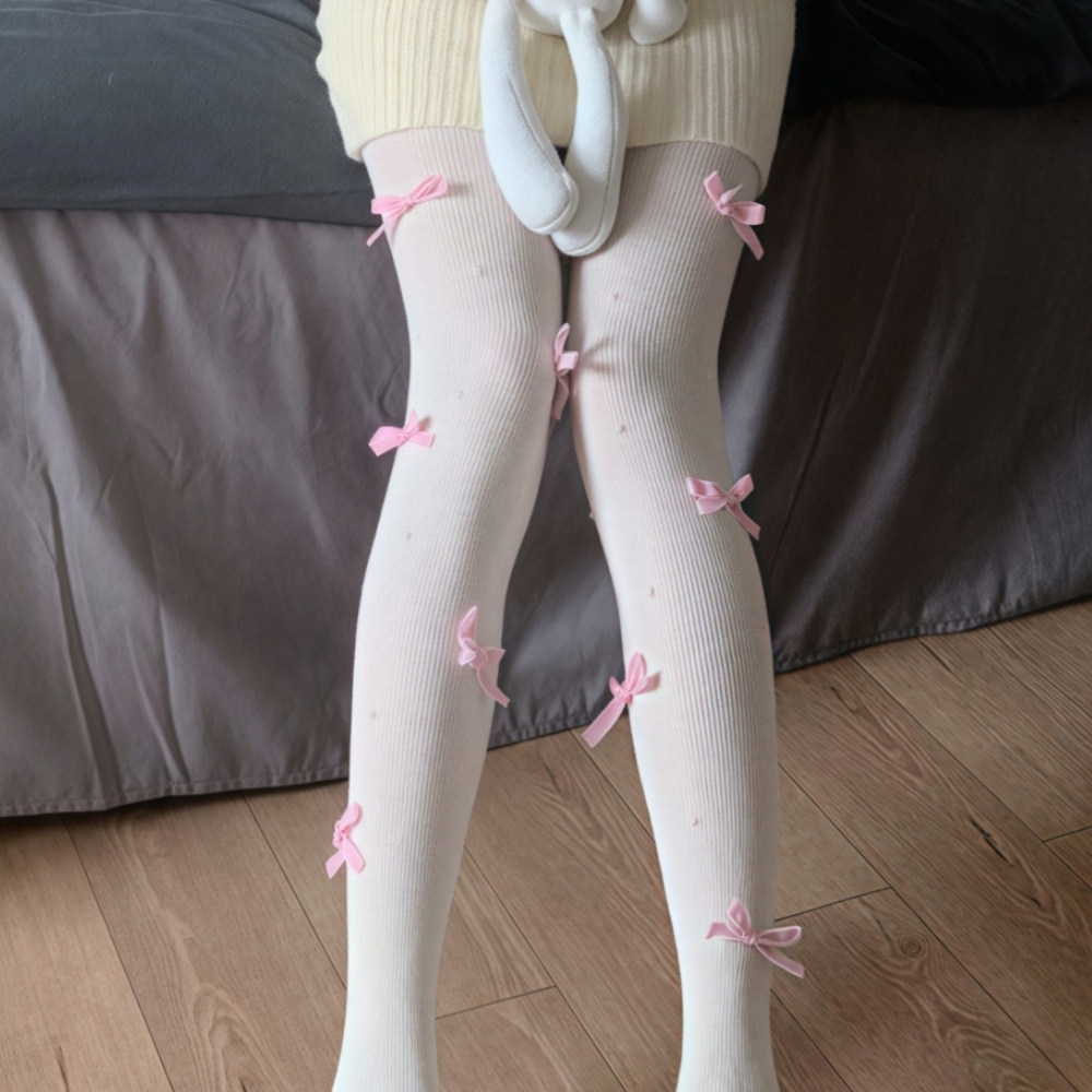 蝴蝶结白色丝袜女秋冬厚款防勾丝lolita洛丽塔芭蕾风纯欲珍珠黑丝