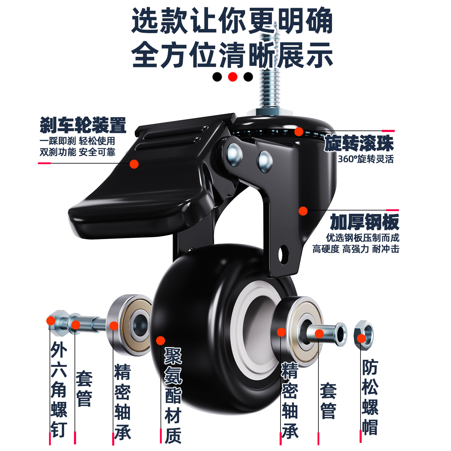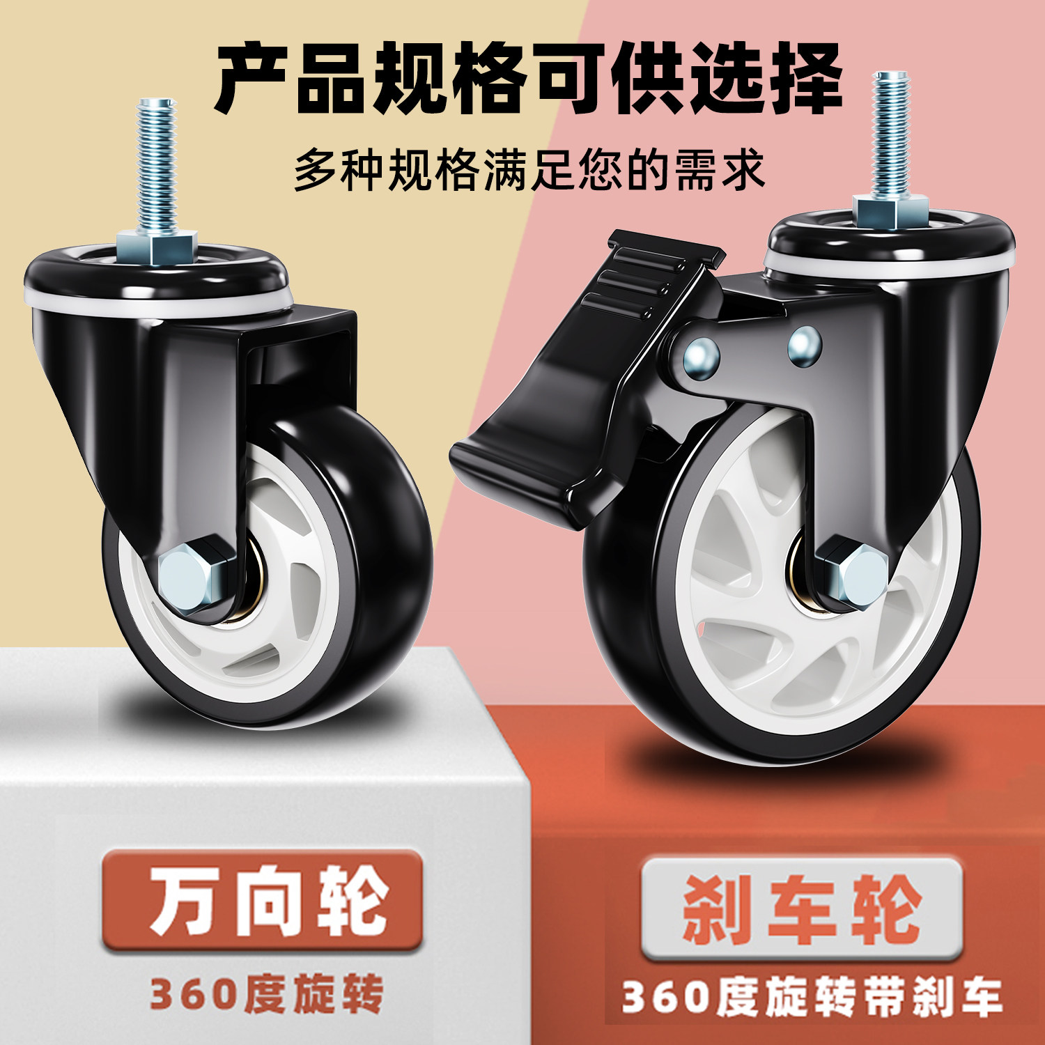 双轴承静音万向轮带刹车1.5寸2寸2.5寸3寸8/10/12mm丝杆脚轮轱辘