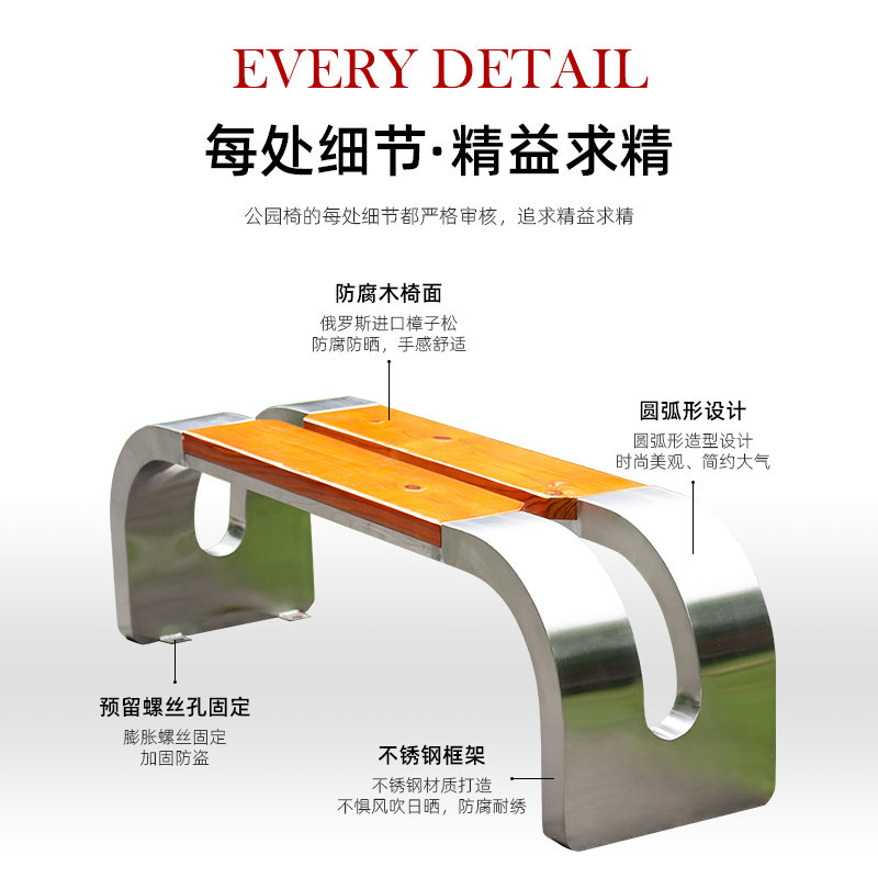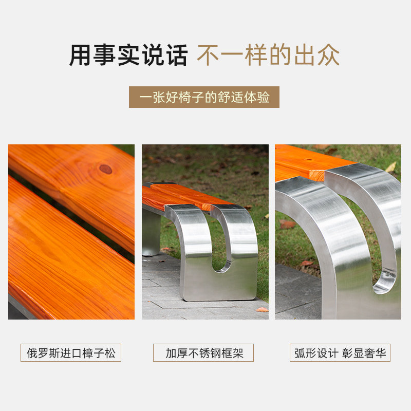 推荐理由:公园椅不锈钢户外长椅防腐防锈实木铁艺长条凳庭院园林座椅休闲椅
