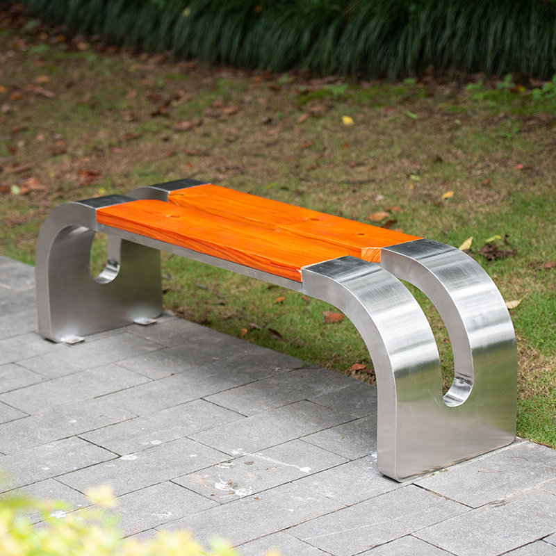 公园椅不锈钢户外长椅防腐防锈实木铁艺长条凳庭院园林座椅休闲椅