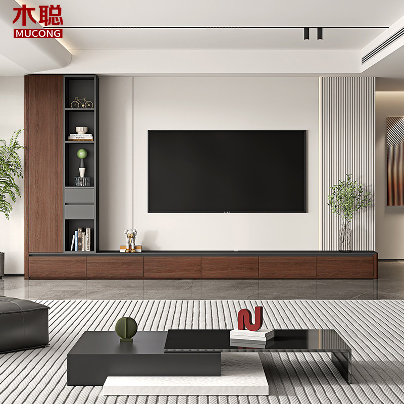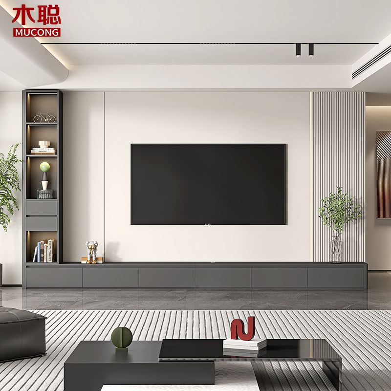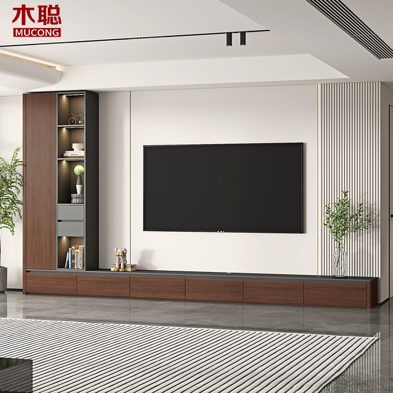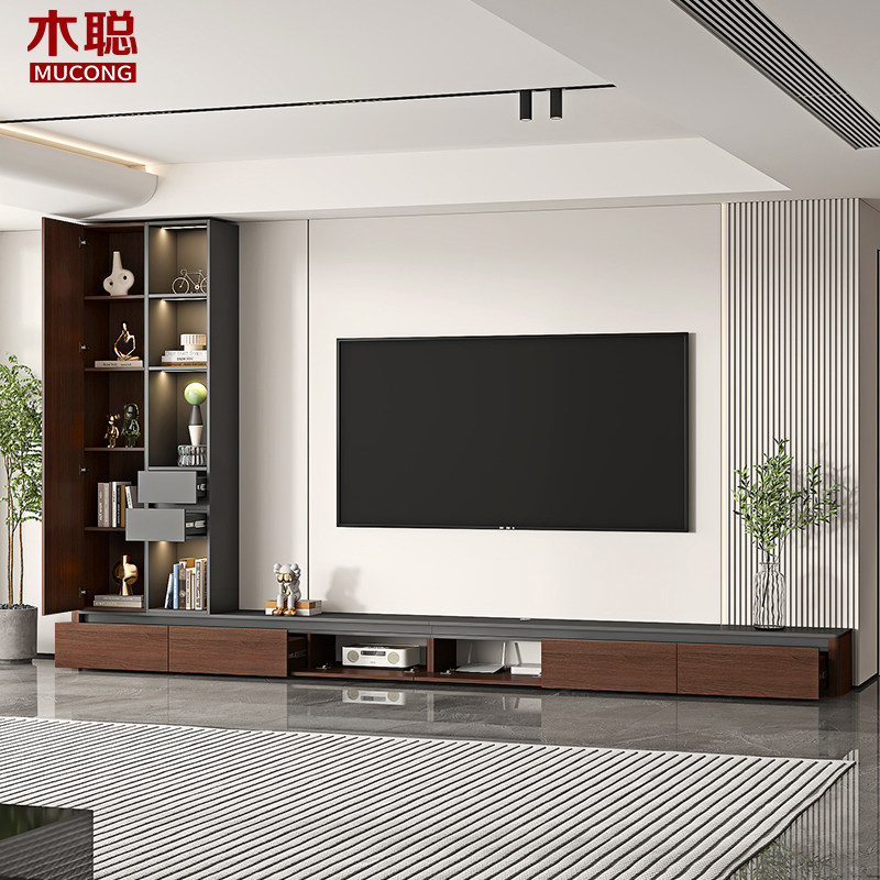 意式轻奢风电视柜落地收纳储物柜一体客厅家用展示柜组合墙4D105